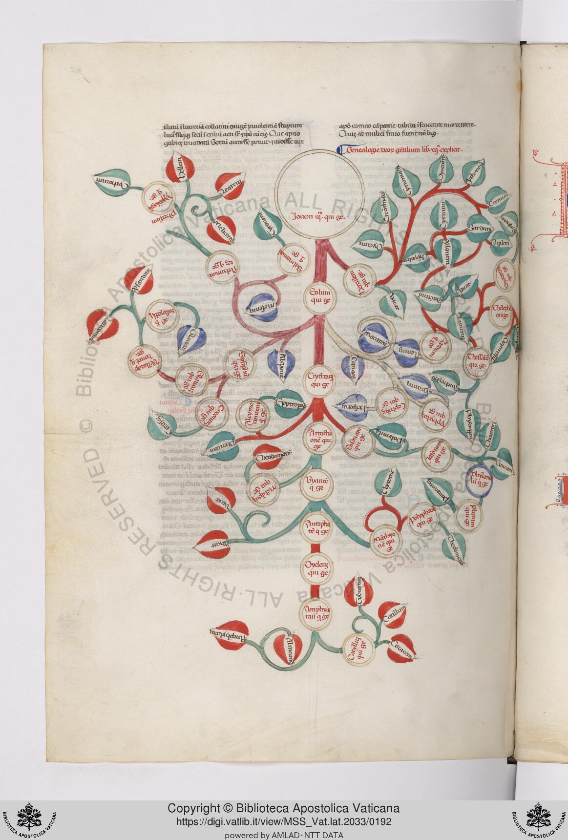 Città del Vaticano, BAV, Vat. lat. 2033, f. 94v. Albero genealogico di Ercole e Eolo.