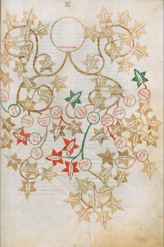 Firenze, Biblioteca Medicea Laurenziana, Plut. 52.9, f. 101r. Manoscritto autografo di Giovanni Boccaccio. Albero genealogico di Nettuno.