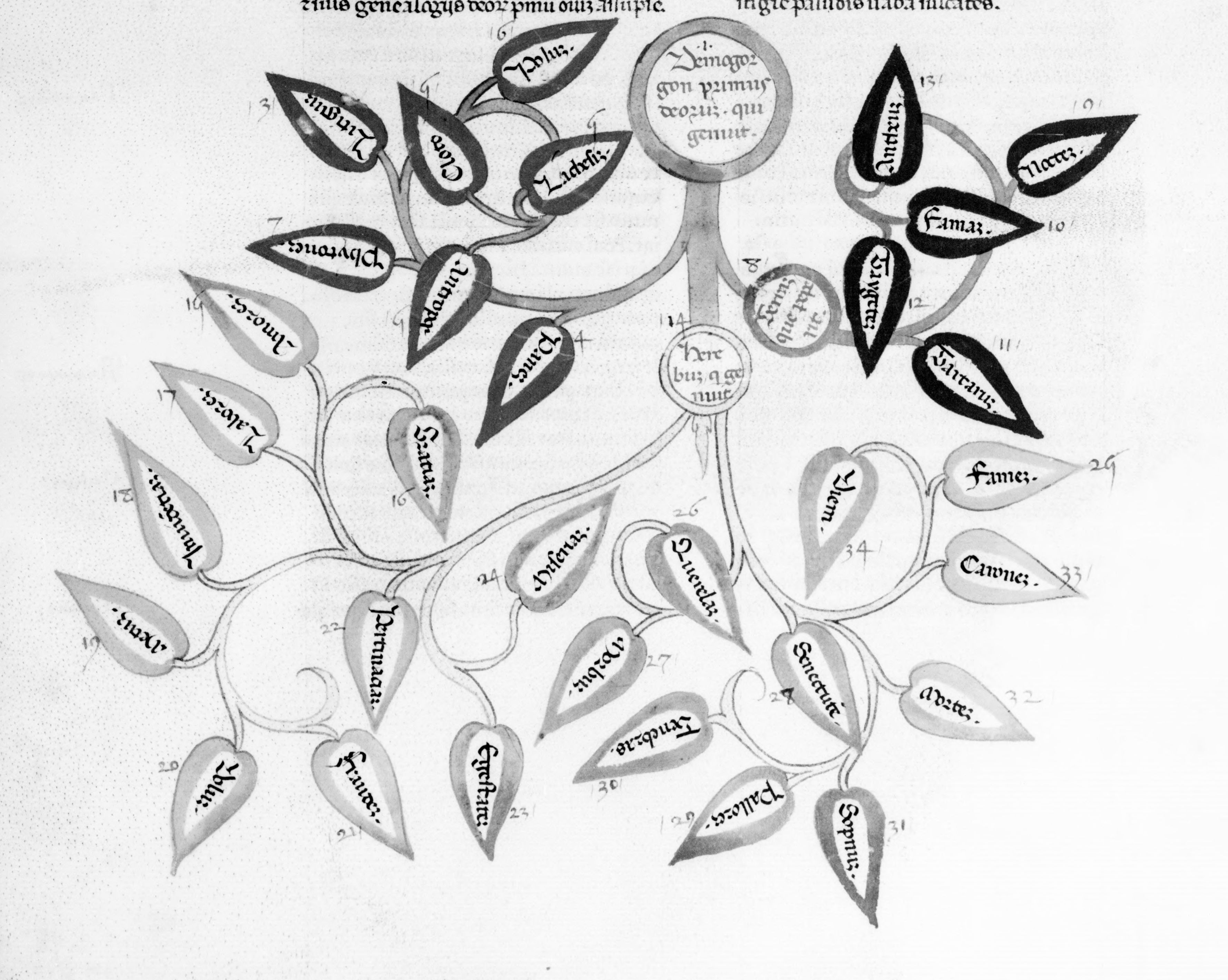 Parigi, Bibliothèque Nationale de France, Lat. 7877, f. 17v. Albero genealogico di Demogorgone.