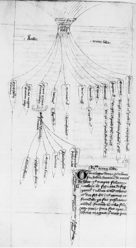 Parigi, Bibliothèque Nationale de France, Lat. 14636, f. 200v. Albero genealogico di Celo.