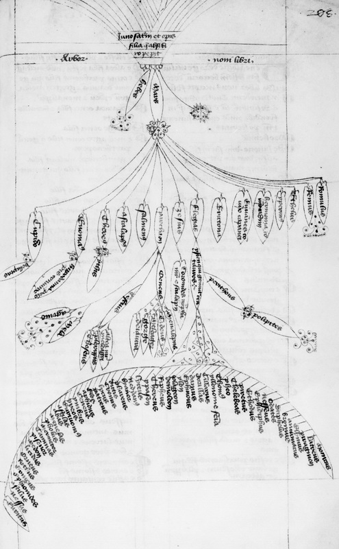 Parigi, Bibliothèque Nationale de France, Lat. 14636, f. 208r. Albero genealogico di Giunone.