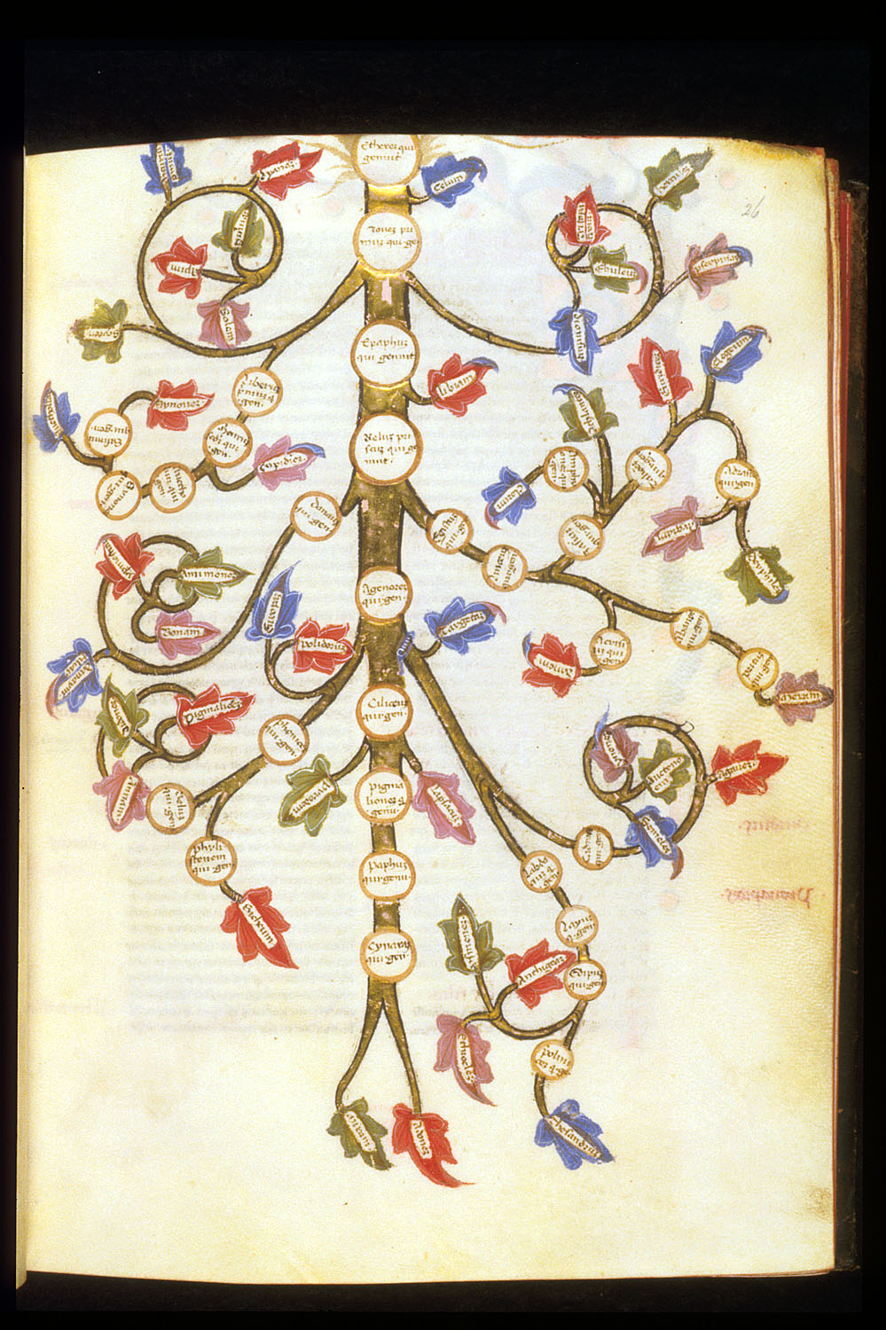 Londra, British Library, Egerton 1865, f. 26r. Il manoscritto è datato 23 giugno 1388. Albero genealogico di Etere.