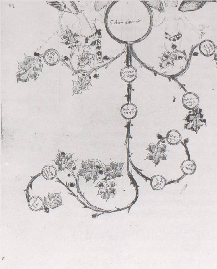 Firenze, Biblioteca Nazionale Centrale, II.I.61, f. 19v. Albero genealogico di Celo.