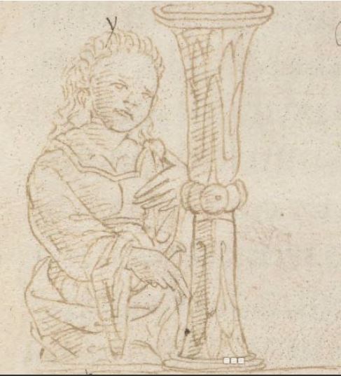 Cambridge (Mass.), Harvard University, Houghton Library, Richardson 41, f. 9r. Figura femminile, all'interno dell'iniziale figurata I(syphyles).