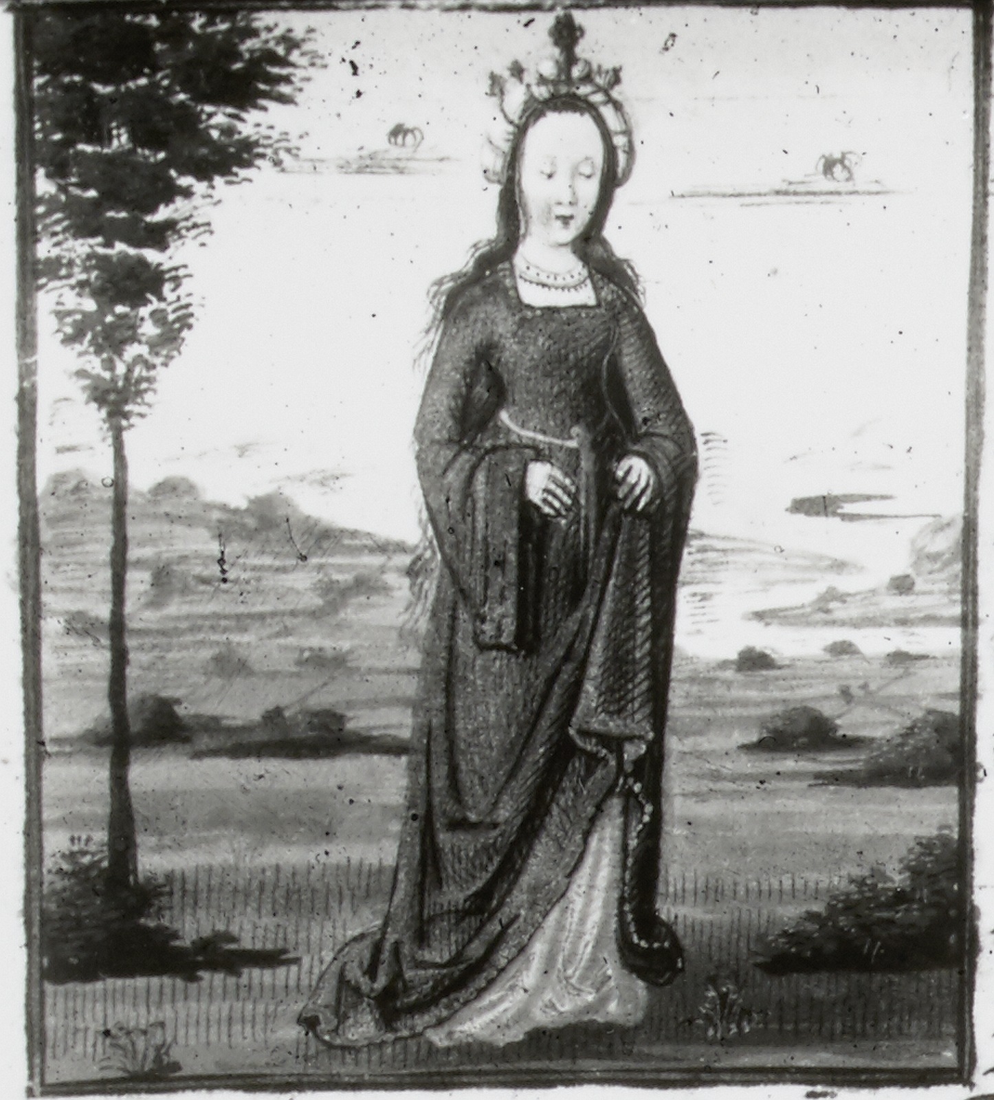 Dresda, Sächsische Landesbibliothek, F 171 b, f. 13v. La dea Venere vestita di un abito sfarzoso.