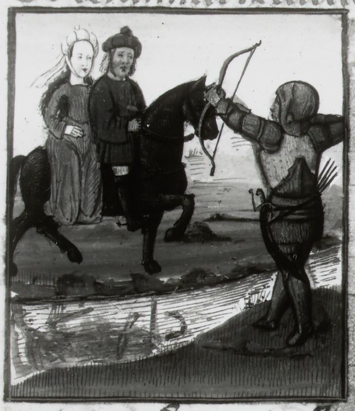 Miniatore di Bourges (1490 c.), Ercole scocca una freccia contro il centauro Nesso