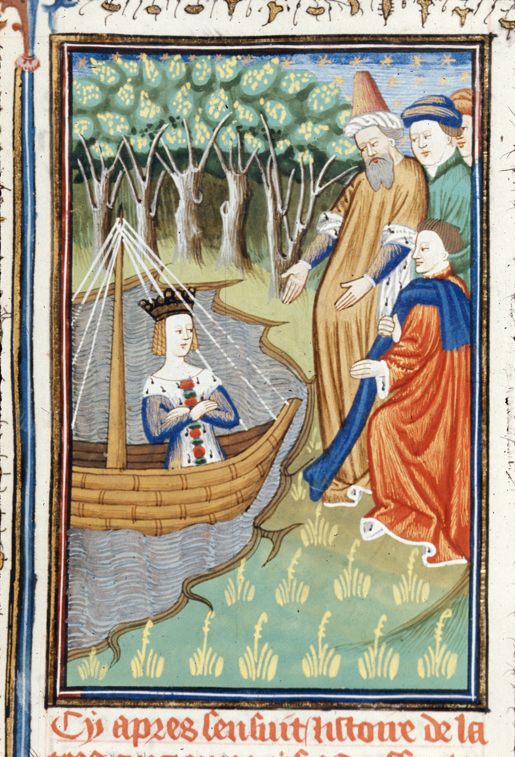 Londra, British Library, Royal 16 G V, f. 13r. Iside viene condotta in nave verso l'Egitto.