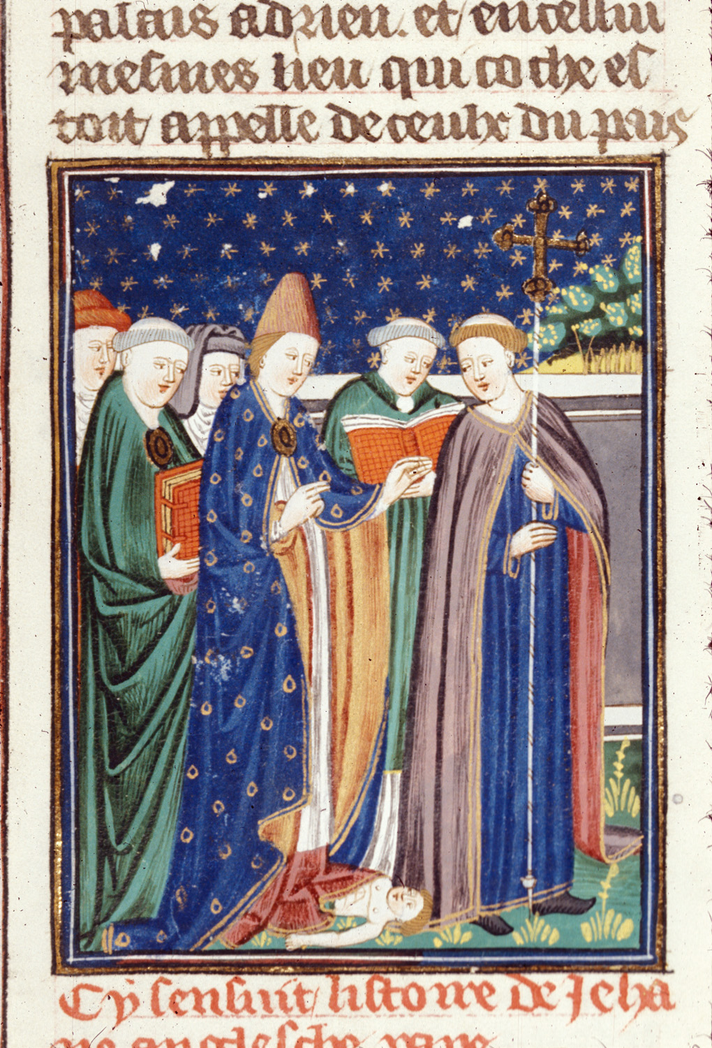 Londra, British Library, Royal 16 G V, f. 120r. La papessa Giovanna partorisce durante una processione religiosa.
