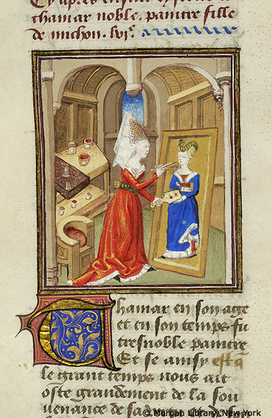 New York, Pierpont Morgan Library, M 381, f. 33v. Tamari dipinge un ritratto di Diana a figura intera.