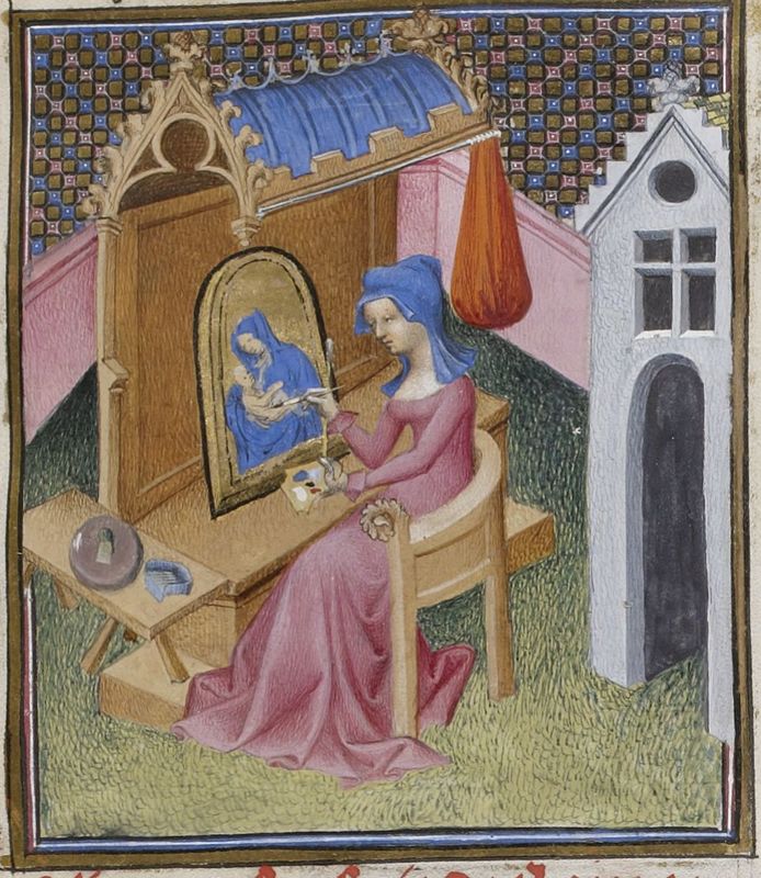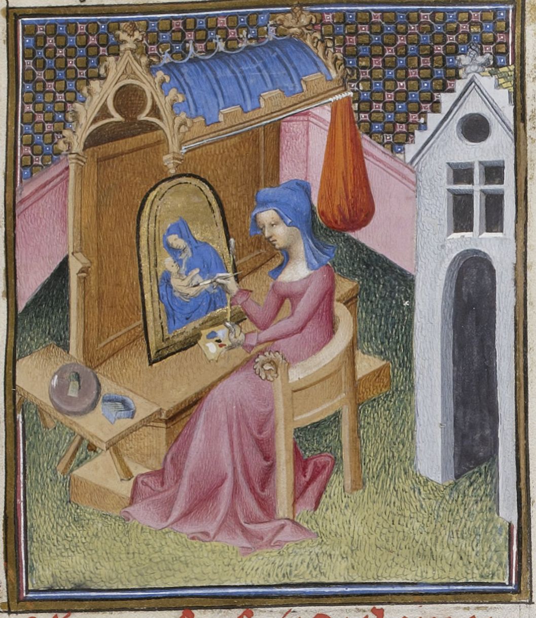 Parigi, Bibliothèque Nationale de France, Fr. 598, f. 86r. Tamari dipinge un ritratto di Diana (rappresentata come una Madonna con Bambino).