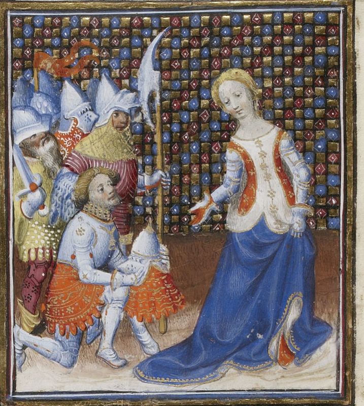 Parigi, Bibliothèque Nationale de France, Fr. 598, f. 148r. Zenobia riceve l'omaggio dei soldati.