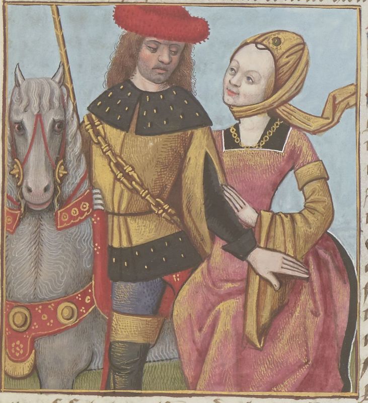 Parigi, Bibliothèque Nationale de France, Fr. 599, f. 21r. Il copista del manoscritto è Johannes Michel. Deianira rapita dal centauro Nesso.
