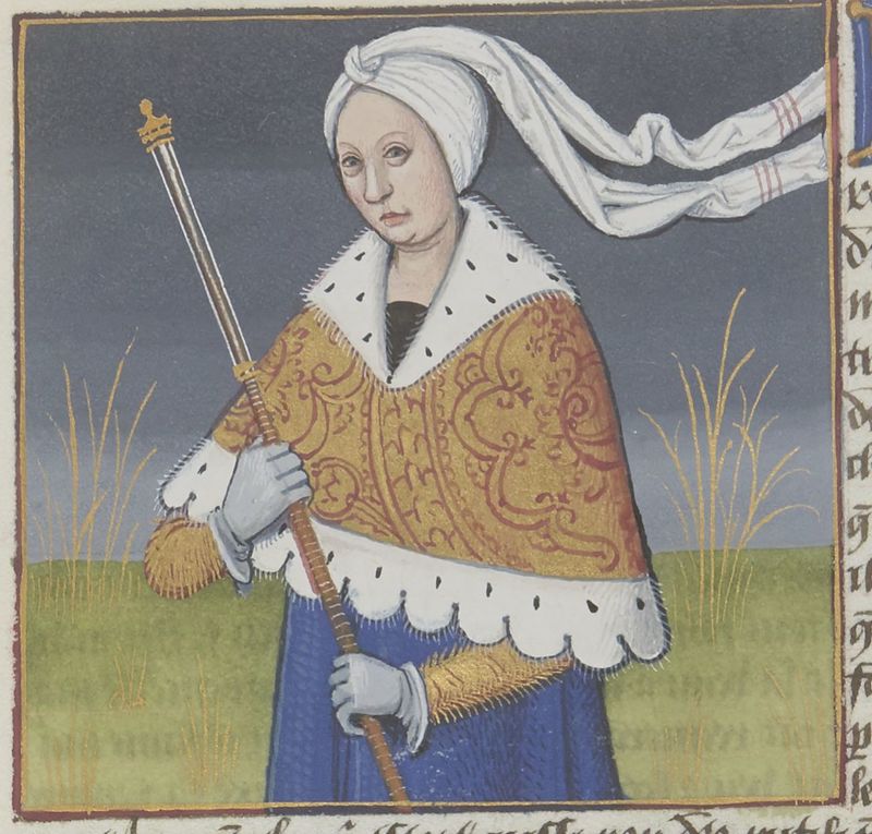 Parigi, Bibliothèque Nationale de France, Fr. 599, f. 35v. Il copista del manoscritto è Johannes Michel. Lavinia, moglie di Enea.