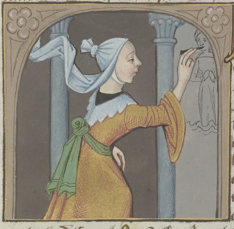 Parigi, Bibliothèque Nationale de France, Fr. 599, f. 53v. Il copista del manoscritto è Johannes Michel. Irene disegna una figura femminile.