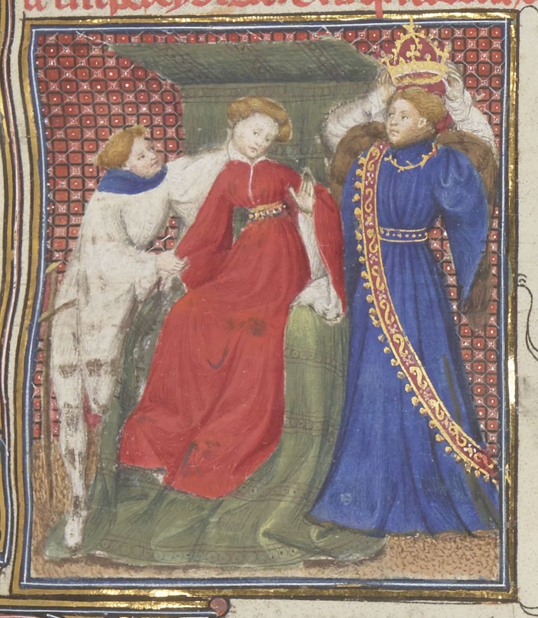 Parigi, Bibliothèque Nationale de France, Fr. 12420, f. 157r. L'imperatrice Irene viene destituita dal figlio e privata della corona.