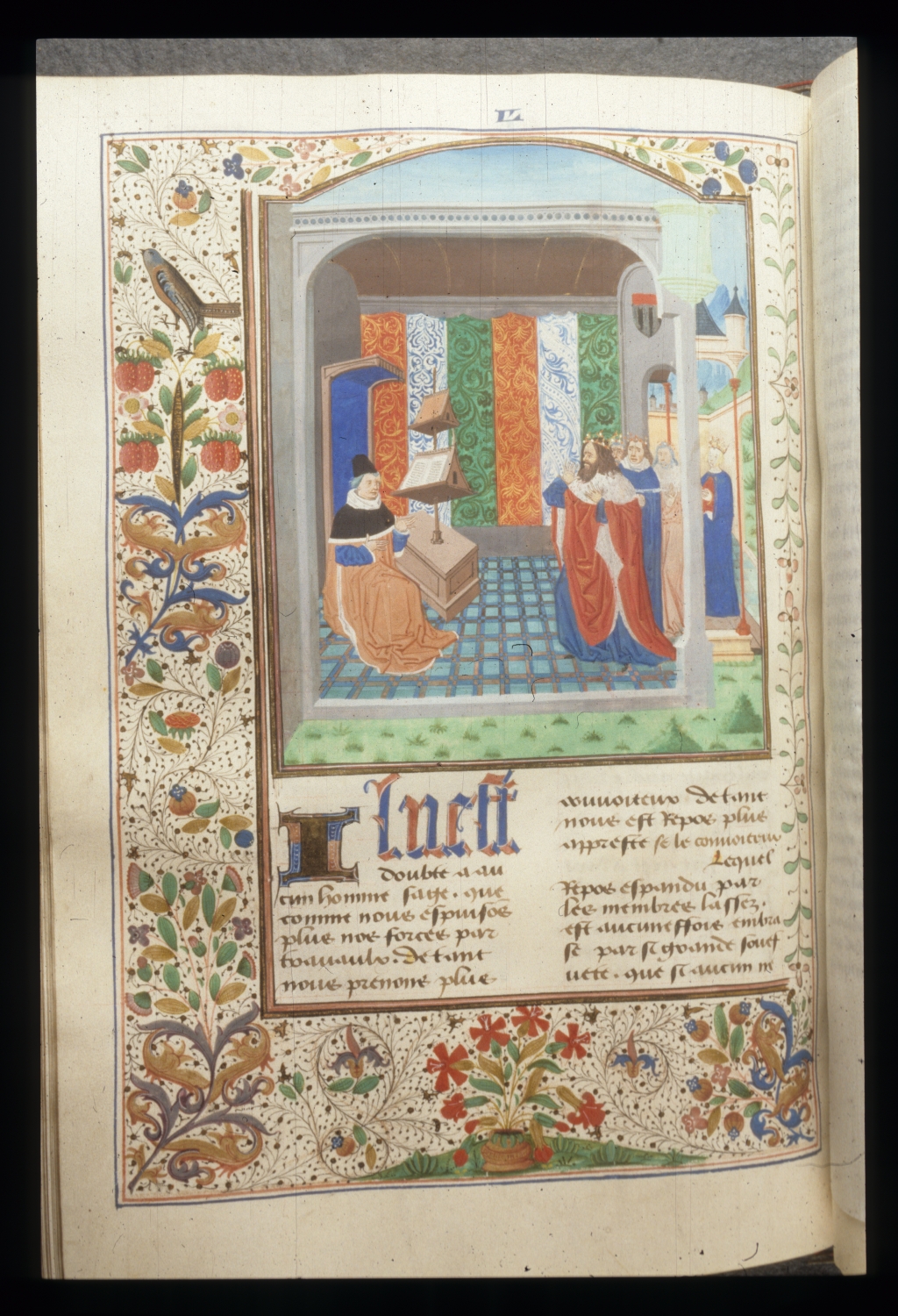 Scuola di Loyset Liédet (1470 c.), L'autore riceve la visita di un gruppo di re e regine