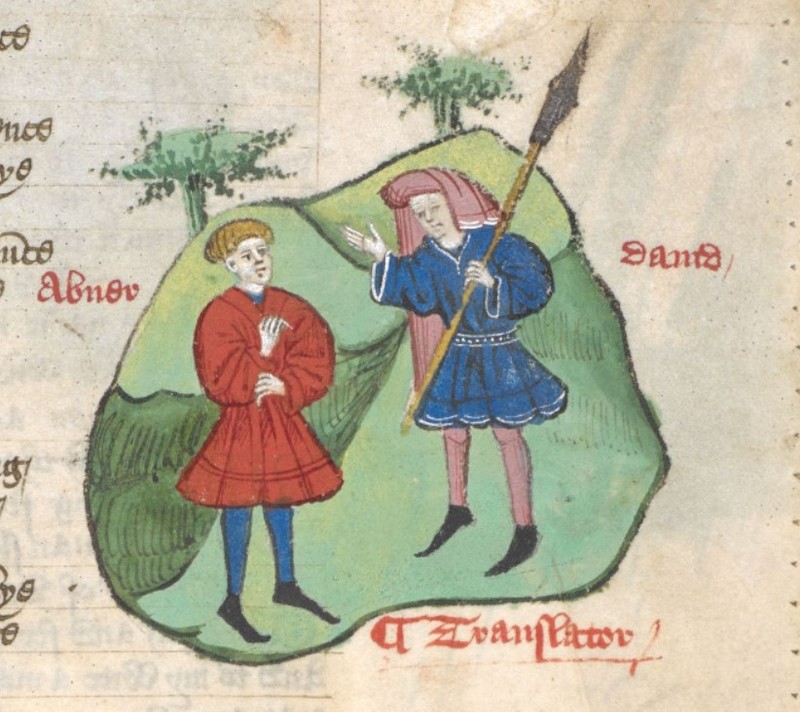 Londra, British Library, Harley 1766, f. 94r. Davide mostra ad Abner la lancia rubata a Saul.