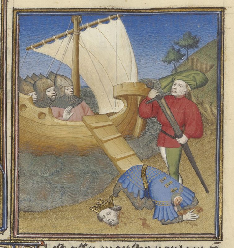 Parigi, Bibliothèque de l'Arsenal, 5193, f. 220v. Demetrio viene decapitato appena sbarcato sulle coste di Tiro.