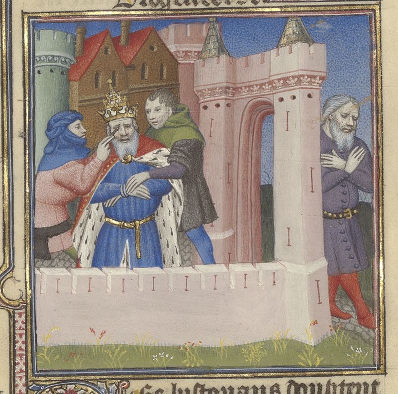 Parigi, Bibliothèque de l'Arsenal, 5193, f. 376r. L'imperatore Diogene viene accecato ed esiliato dalla città.