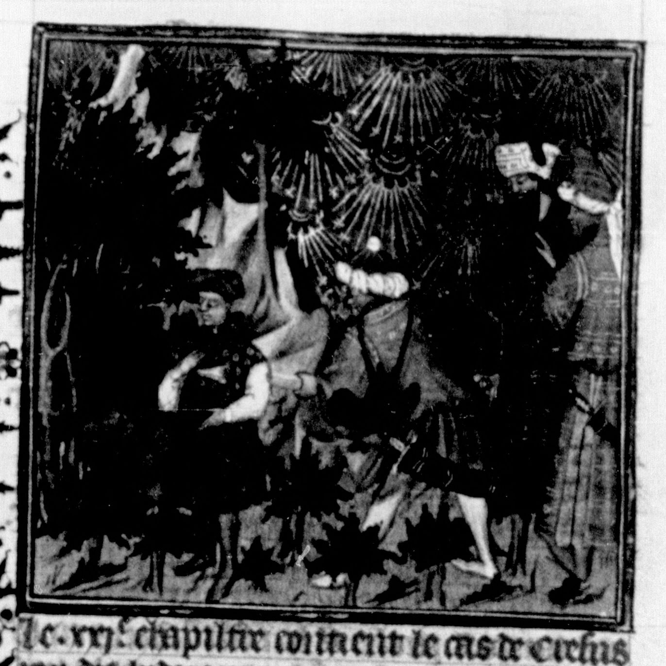 Parigi, Bibliothèque Nationale de France, Fr. 226, f. 57r. Adrasto uccide per errore Atis, figlio di Creso, durante una battuta di caccia al cinghiale.