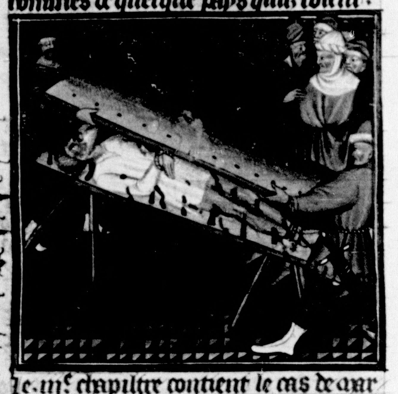Parigi, Bibliothèque Nationale de France, Fr. 226, f. 128v. Attilio Regolo viene torturato tra due assi chiodate.