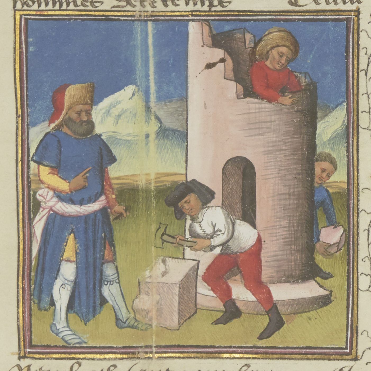 Maestro del Roman de la Rose di Vienna (1435-1440), Nembrot sovrintende alla costruzione della Torre di Babele