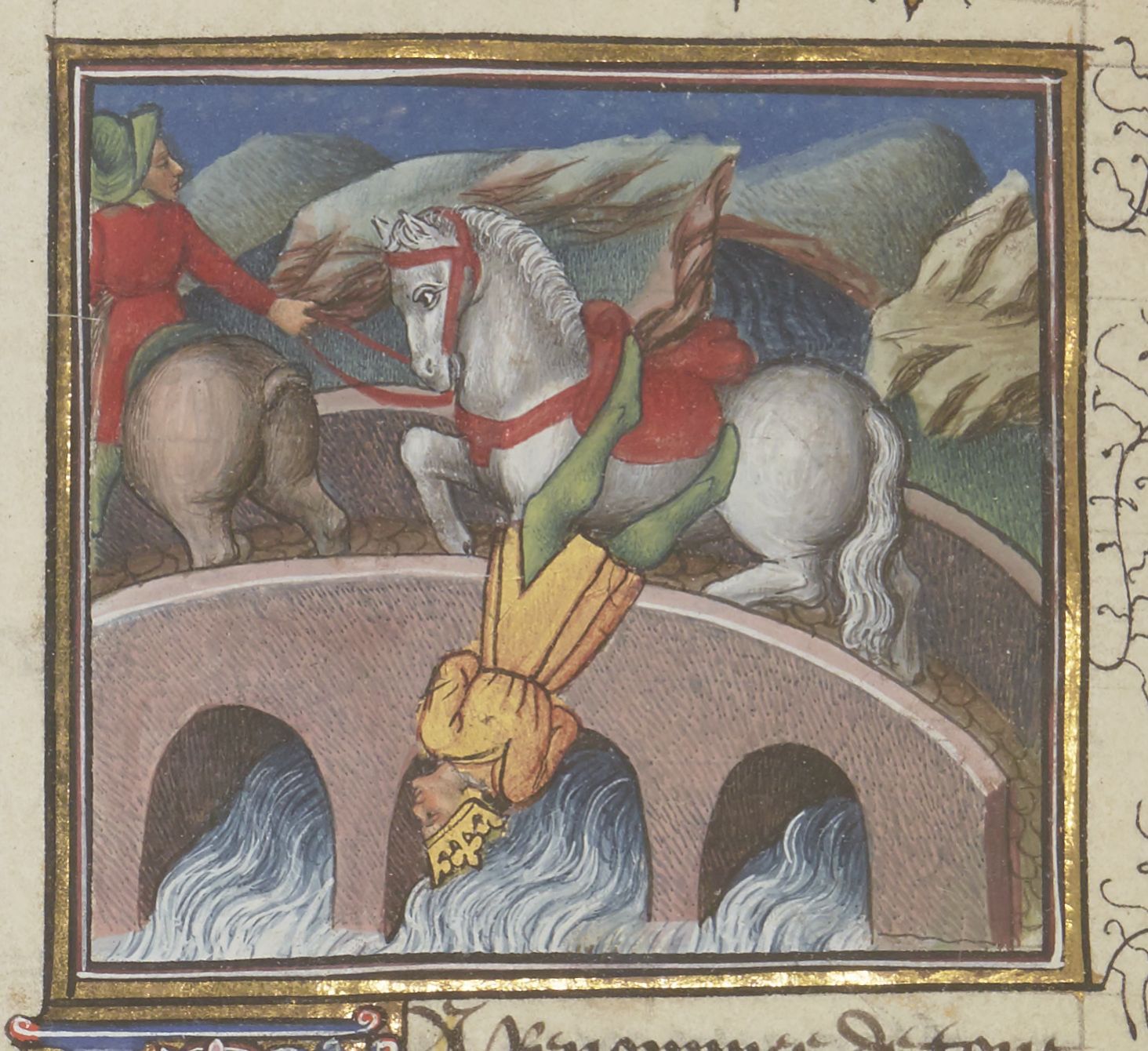 Maestro del Roman de la Rose di Vienna (1435-1440), Arrigo precipita da un ponte