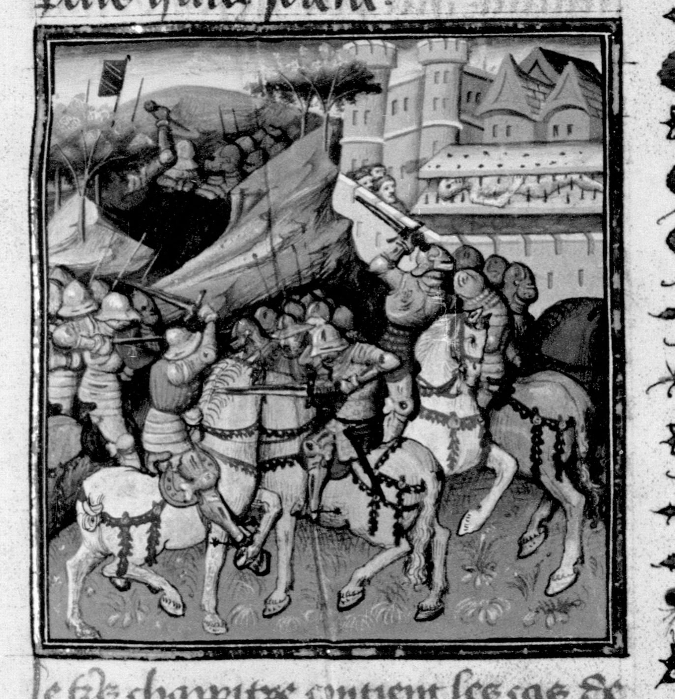 Miniatore francese (1425-1450), Marco Attilio Regolo viene torturato mentre l'esercito romano e quello cartaginese di affrontano