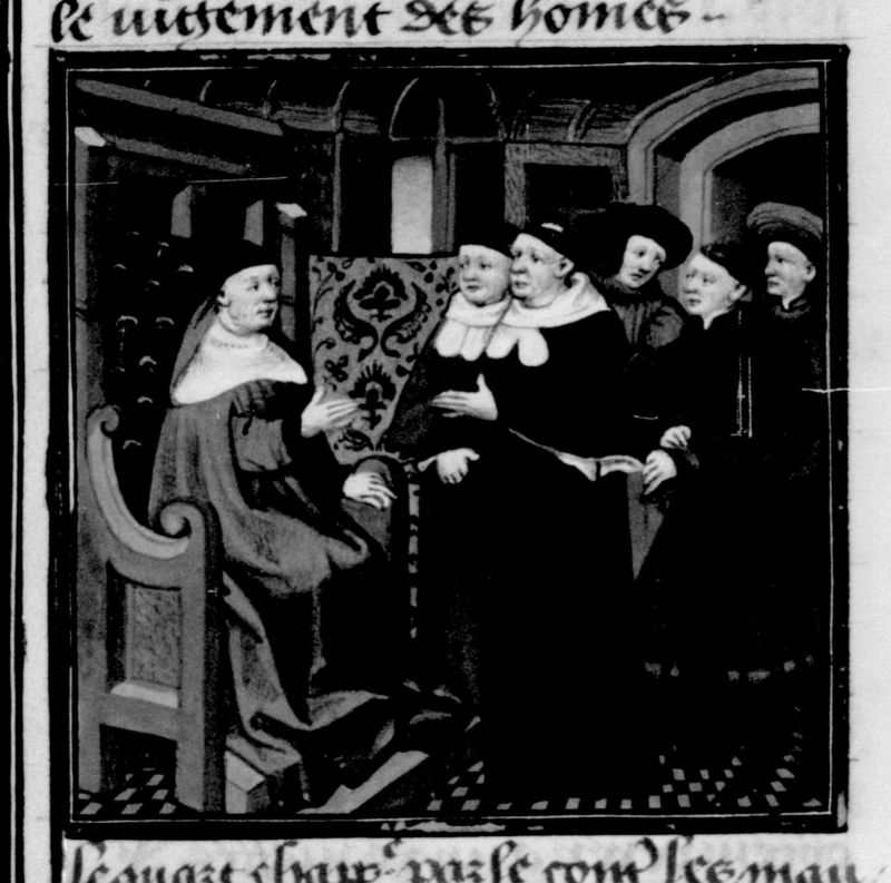 Miniatore francese (1425-1450), L'autore discute con alcuni legisti