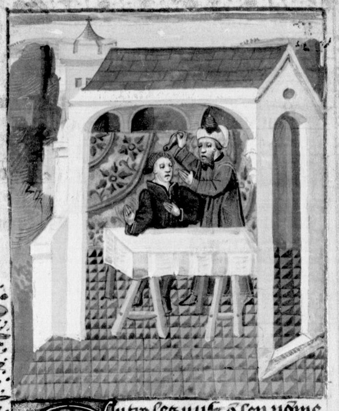 Parigi, Bibliothèque Nationale de France, Fr. 232, f. 35v. Samuele consacra Saul re ungendogli il capo con l'olio santo.