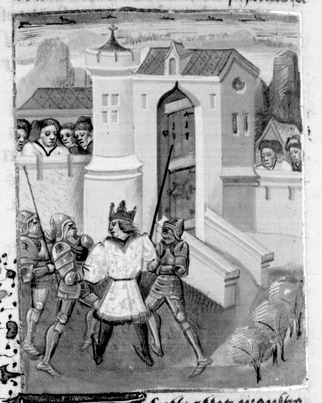 Parigi, Bibliothèque Nationale de France, Fr. 232, f. 187v. Demetrio II Nicatore viene catturato dai Parti e condotto prigioniero in città.