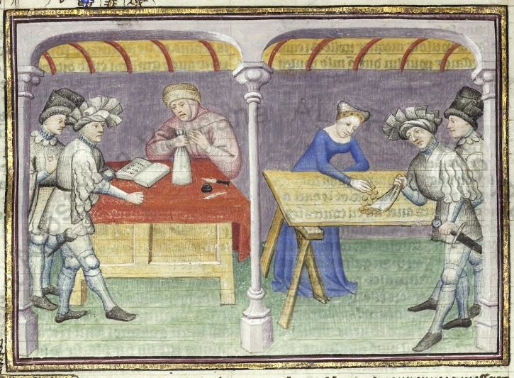 Maestro della Cité des Dames (1414-1419), Guasparruolo presta del denaro a Gulfardo; Gulfardo consegna i soldi ad Ambrogia