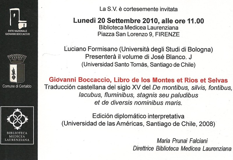 Giovanni Boccaccio, Libro de Montes et Rios et Selvas
