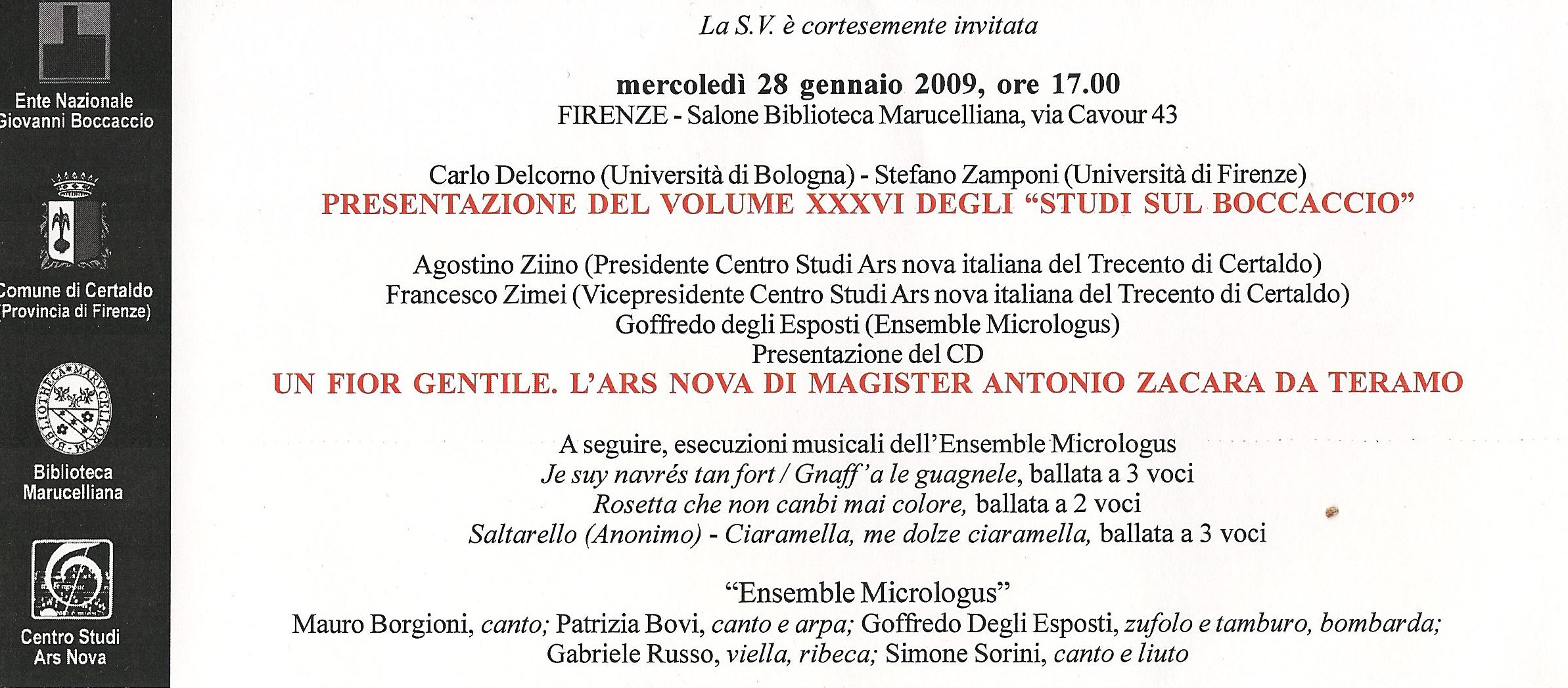 ore 17:00, Biblioteca Marucelliana, Firenze