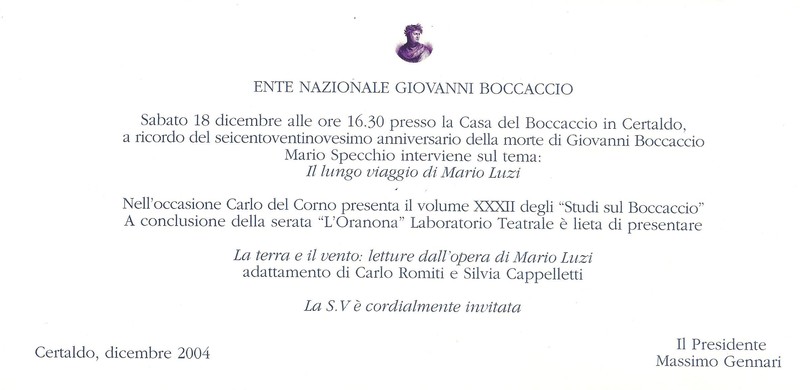 A ricordo del 629° anniversario della morte di Giovanni Boccaccio, Mario Specchio interviene sul tema