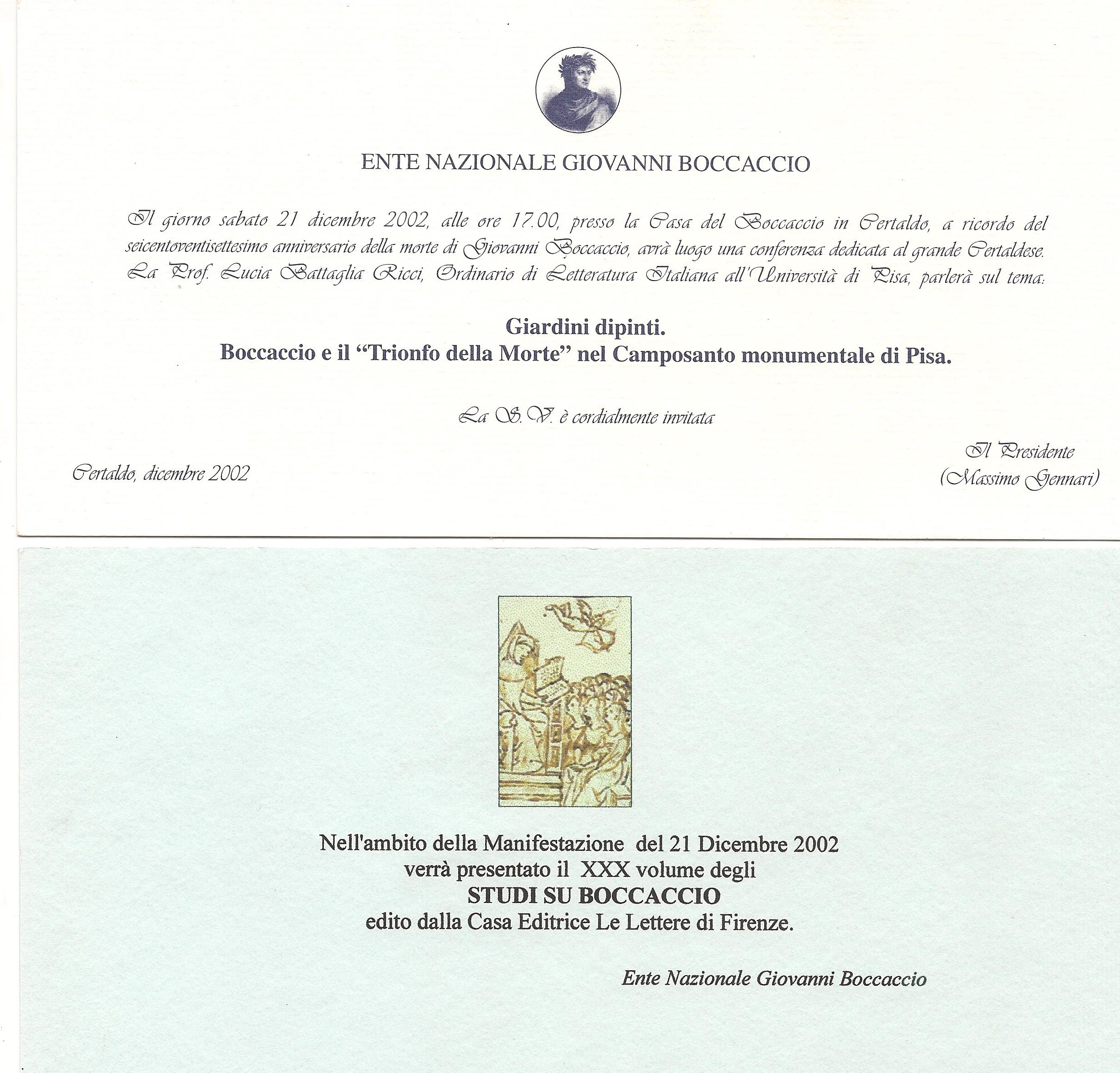 A ricordo del 627° anniversario della morte di Giovanni Boccaccio, la prof. Lucia Battaglia Ricci (Università di Pisa) parlerà sul tema