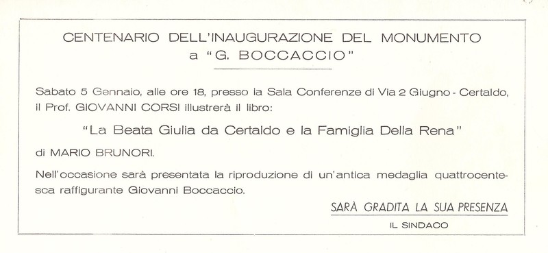 Nel centenario dell'inaugurazione del monumento a Giovanni Boccaccio, presentazione del libro